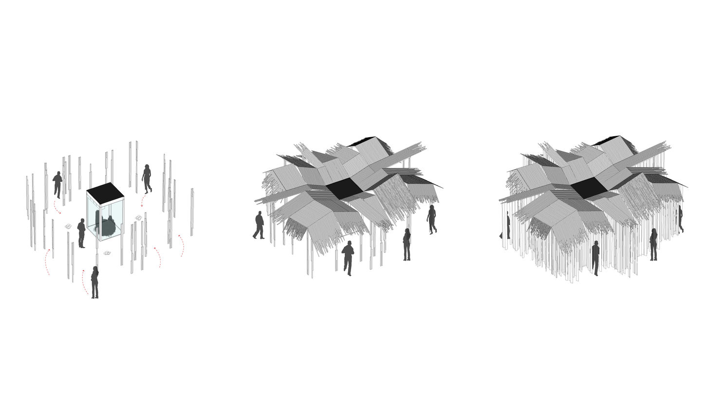 The Nature Machine is a living pavilion—an atmospheric timber structure with a birch bark curtain housing an active, growing mycelium ecosystem. It represents a bold exploration of co-habitation, inviting viewers to reimagine our relationship with nature through a poetic, technologically mediated interaction.